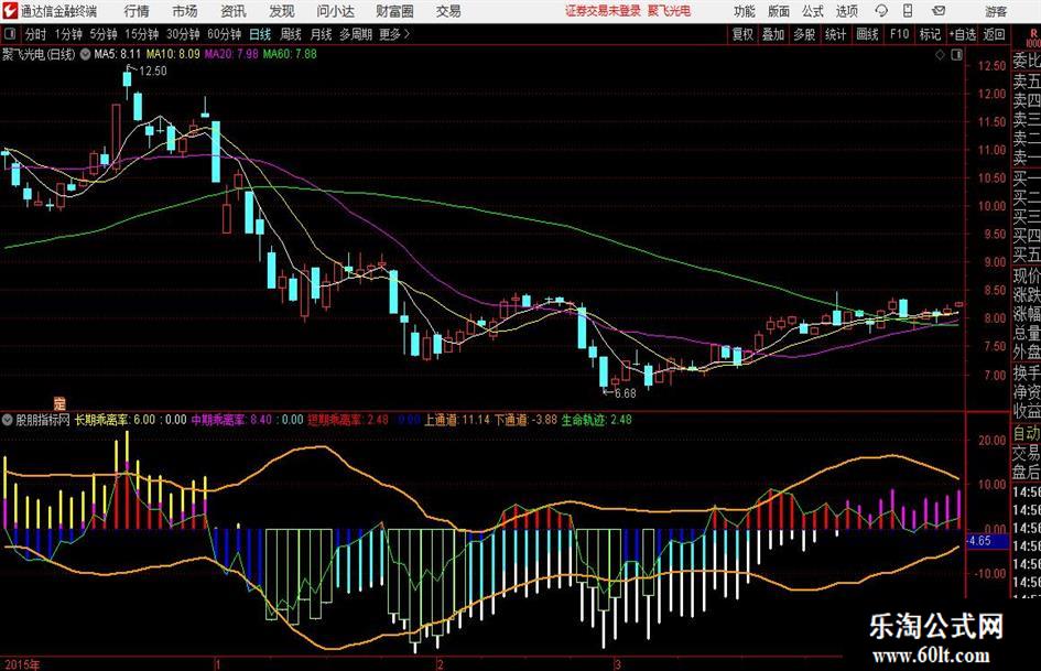 IF(中期乖离率<=0,中期乖离率,0),COLORFFFF33,STICK,LINETHICK3;