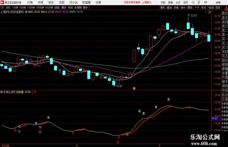 上升:IF(红轨道>=绿轨道,绿轨道,DRAWNULL),COLORRED,LINETHICK2;