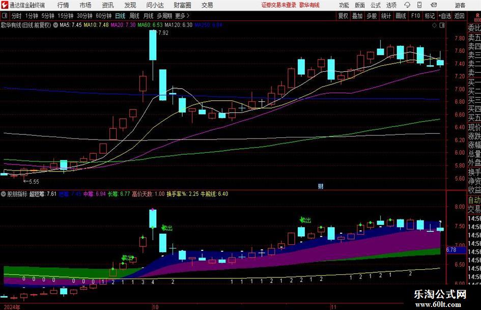 均线系统:包括超短筹、短筹、中筹、长筹,用于判断不同时间周期的趋势。