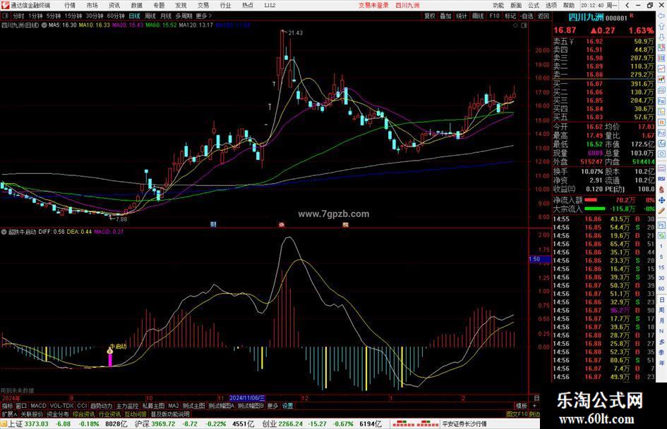 STICKLINE(GSPT1,0,MACD,0.3,0),COLORYELLOW;