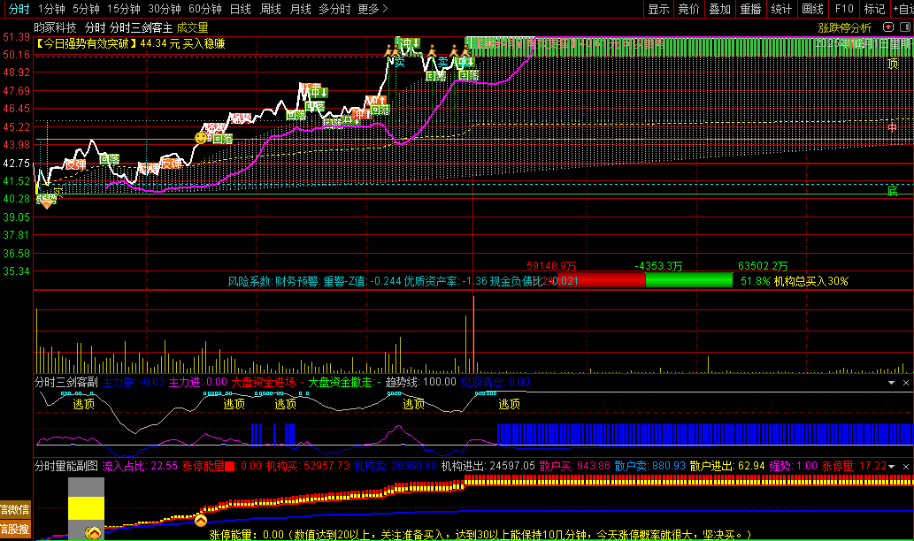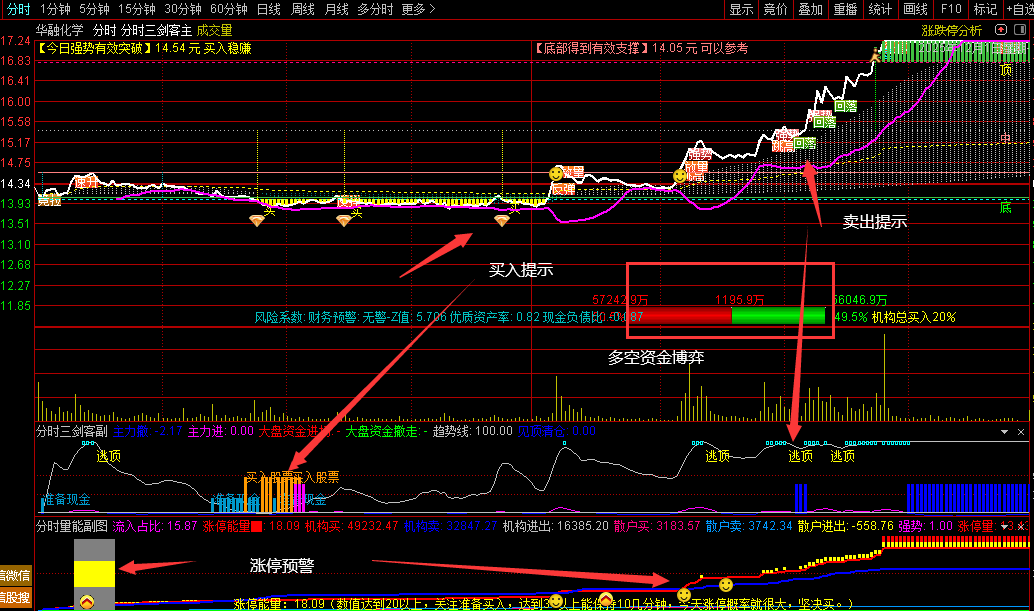 1、分时副图提示低点卖入和高位逃顶!