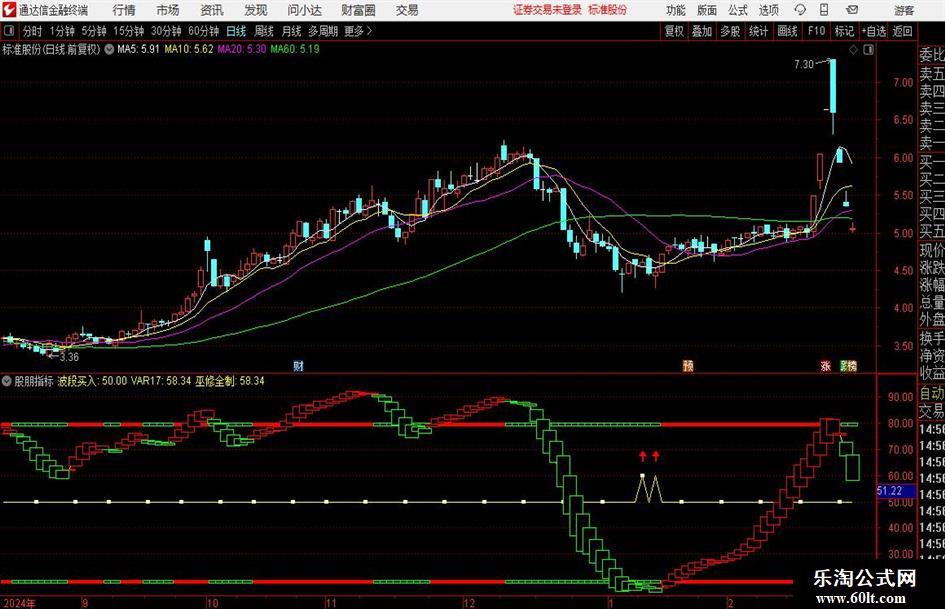 波段买入: IF(VarA+VarB<7 AND CROSS(Var8,Var9) AND Var9<-18 AND Var9<VarB,60,50),coloryellow ;
