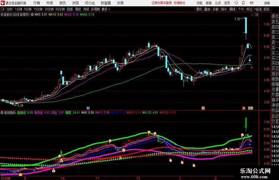 短长价托:=MA5>MA250 AND MA13>MA34 AND MA34>MA55 AND CROSS(MA5,MA250);