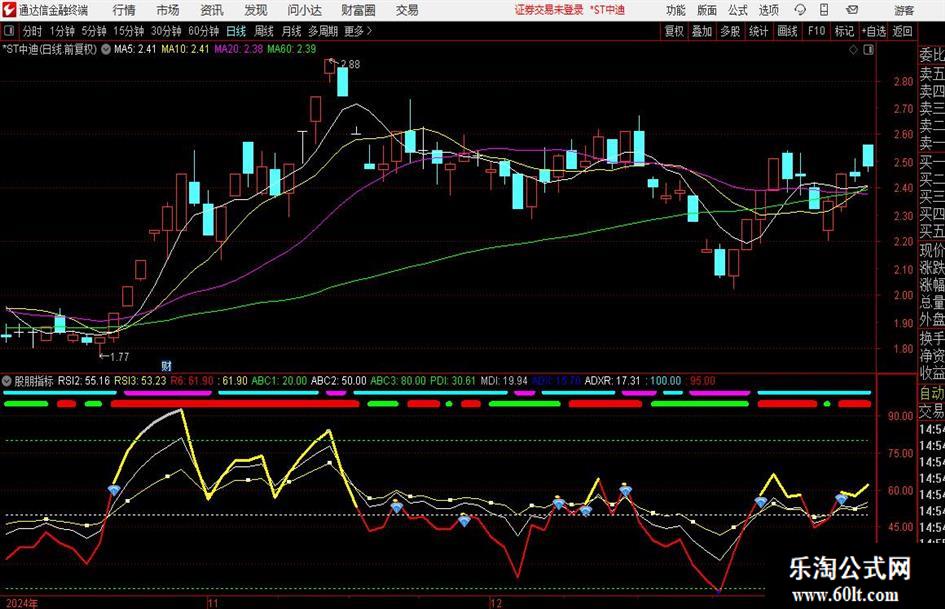 R6:(SMA(MAX(CLOSE-LC,0),6,1)/SMA(ABS(CLOSE-LC),6,1)*100),COLORRED,LINETHICK2;