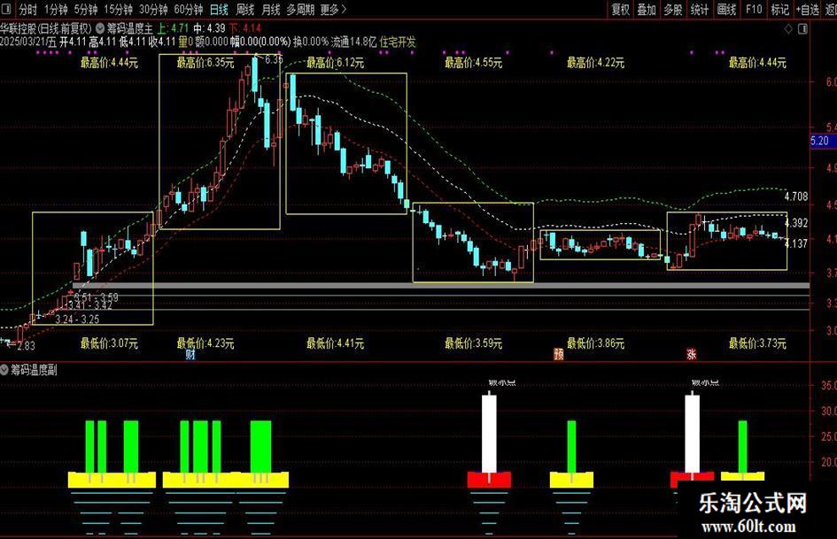 DRAWTEXT_FIX(CURRBARSCOUNT=60,0.55,0.005,0,STRCAT(STRCAT('最高价:',VAR2STR(HH2,2)),'元'))COLORYELLOW;
