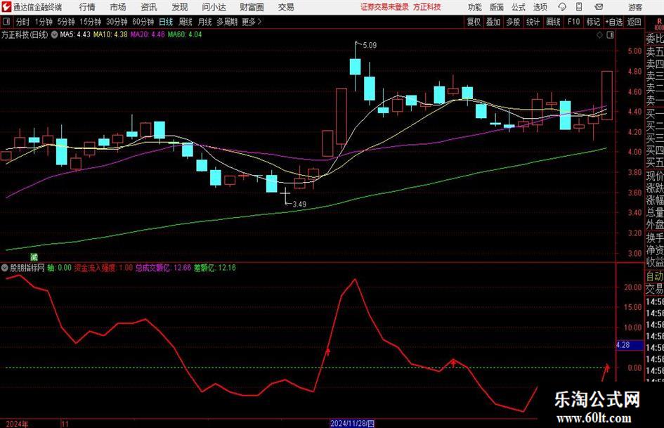 资金控盘:资金流入强度,资金下穿0轴卖出