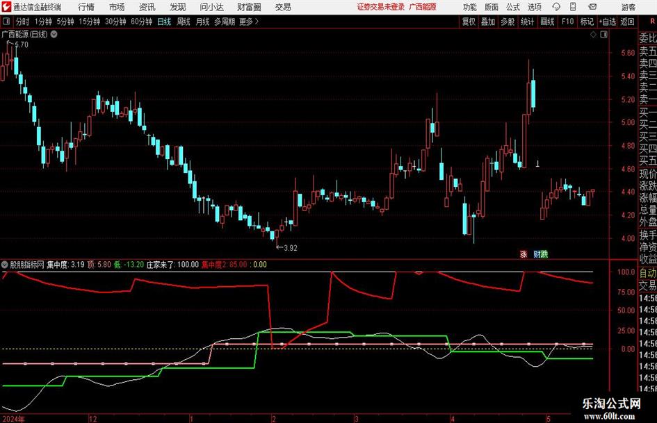 低:REF(集中度,BARSLAST(D2)),LINETHICK2,COLORGREEN;