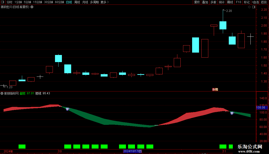 IF(超短>REF(超短,1), 超短,DRAWNULL),LINETHICK2,COLORRED;