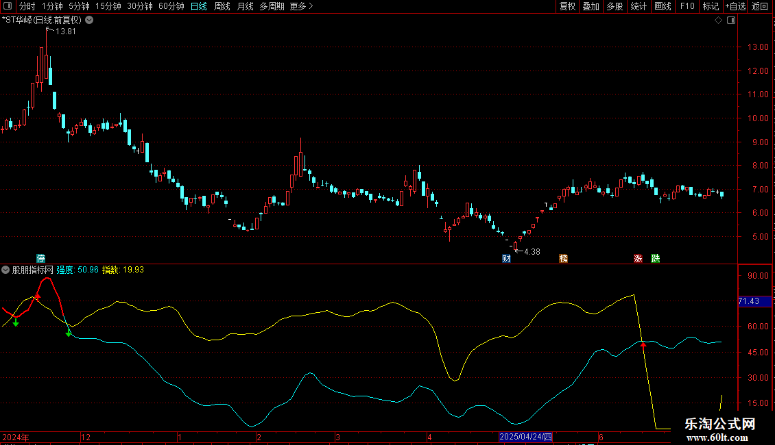IF(强度>60,强度,DRAWNULL),LINETHICK2,COLORRED;