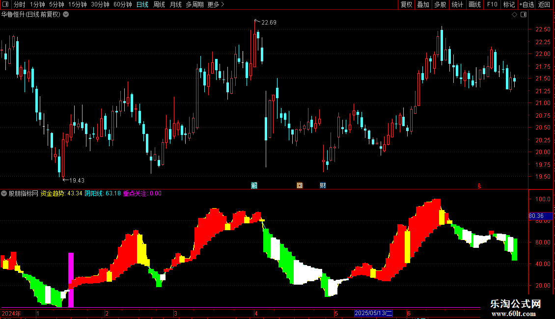 阴阳线:EMA((VAR2-VAR3)/(VAR4-VAR3)*100,13),COLORFFFF00;