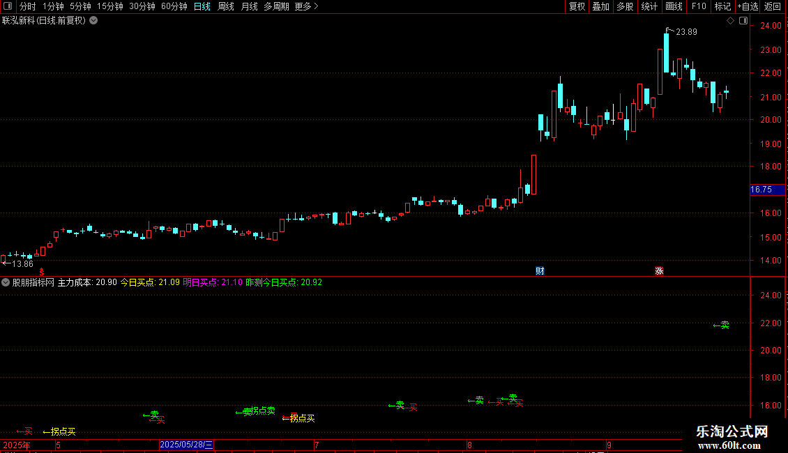 DRAWTEXT(CROSS(卖线,买线),HIGH*1.01,'←卖'),COLORGREEN;