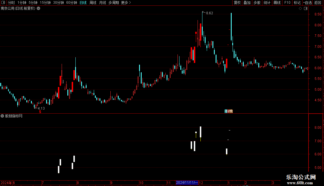 在主图指标中,红色实体代表“涨停板”,黄色“十字星”同时下方出现红色向上箭头的位置,就是信号发出的地方。