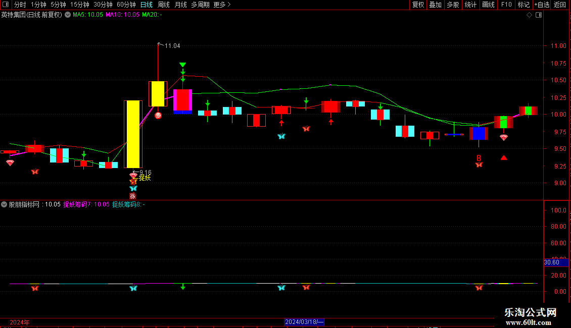 主图中的捉妖信号结合副图的五线袋共振,可精准锁定确定性较高的买点。