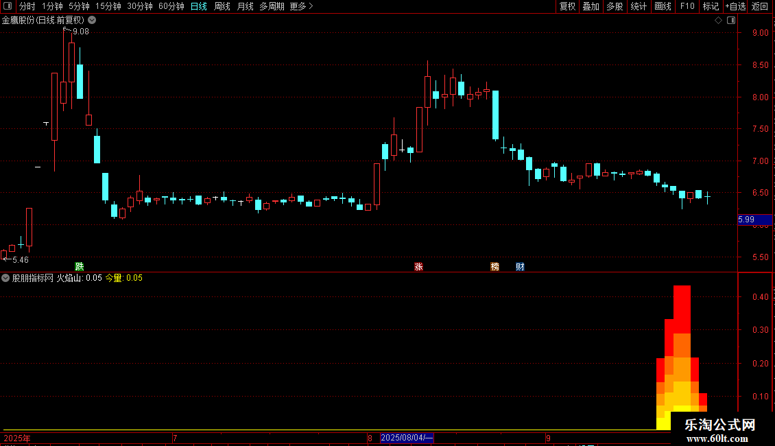 STICKLINE(火焰山>0,0,今量*0.2,8,0) COLOR00FFFF;