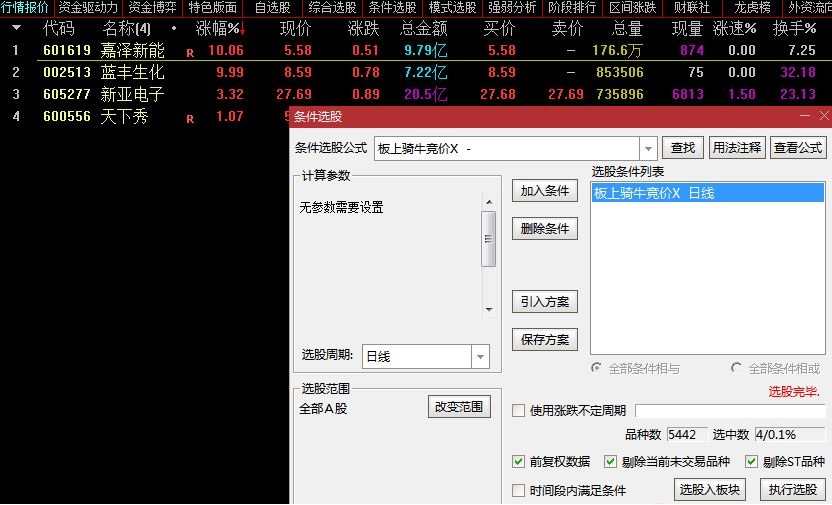 发一个板上骑牛的竞价预警,就是在涨停板的基础上专抓强势票,过滤掉杂毛,当然这里也有风险。