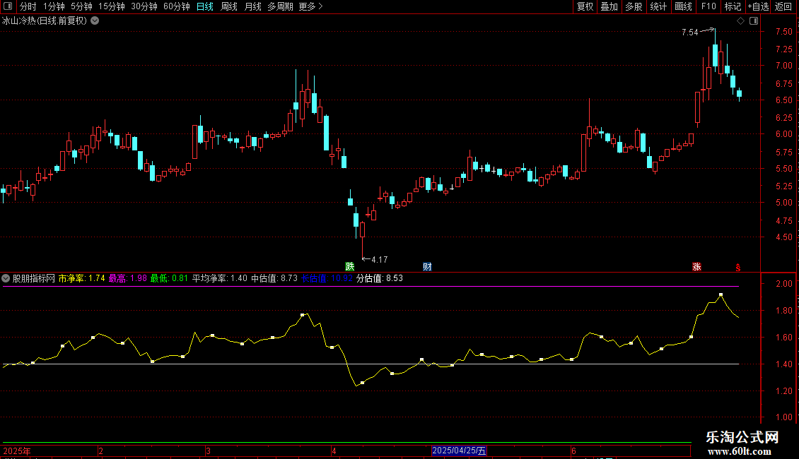 最低:LLV(市净率,CON2STR(FINANCE(42),0)),COLORGREEN;