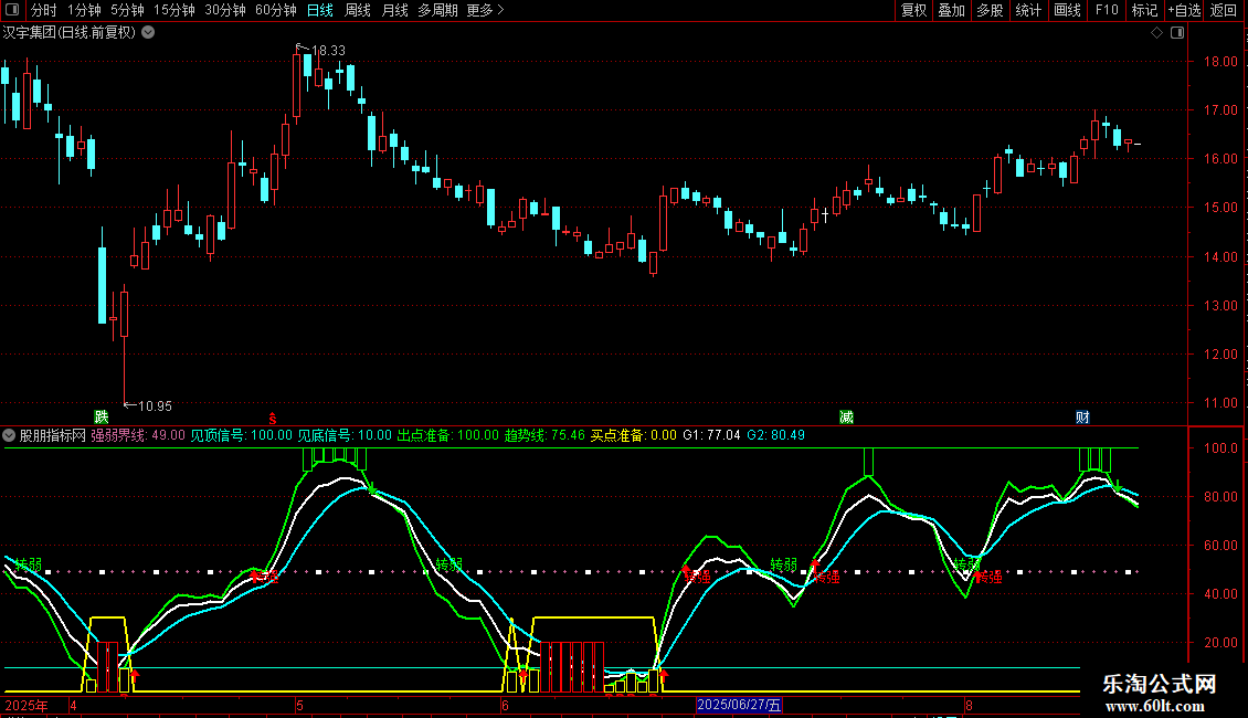 出点准备: IF(CROSS(J2,J1) AND J2>85,70,100),LINETHICK2,COLOR00FF00;