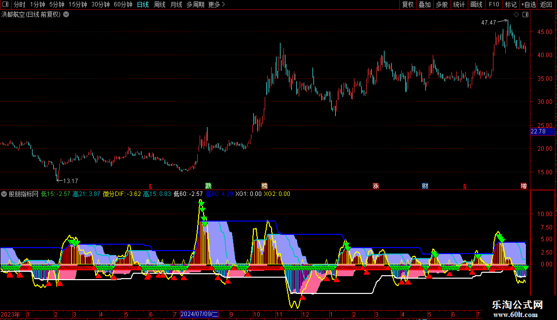 低60:LLV(相对MACD,60),LINETHICK2,COLORWHITE;