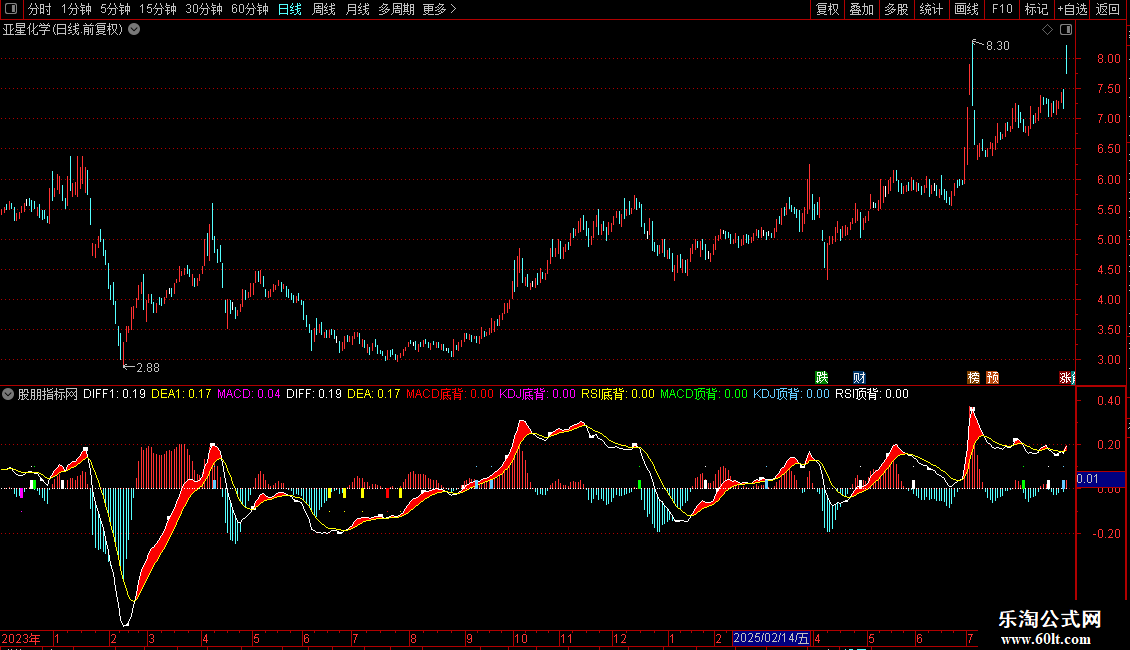 输出平滑异同平均线 :2*(DIFF1-DEA1),COLORSTICK
