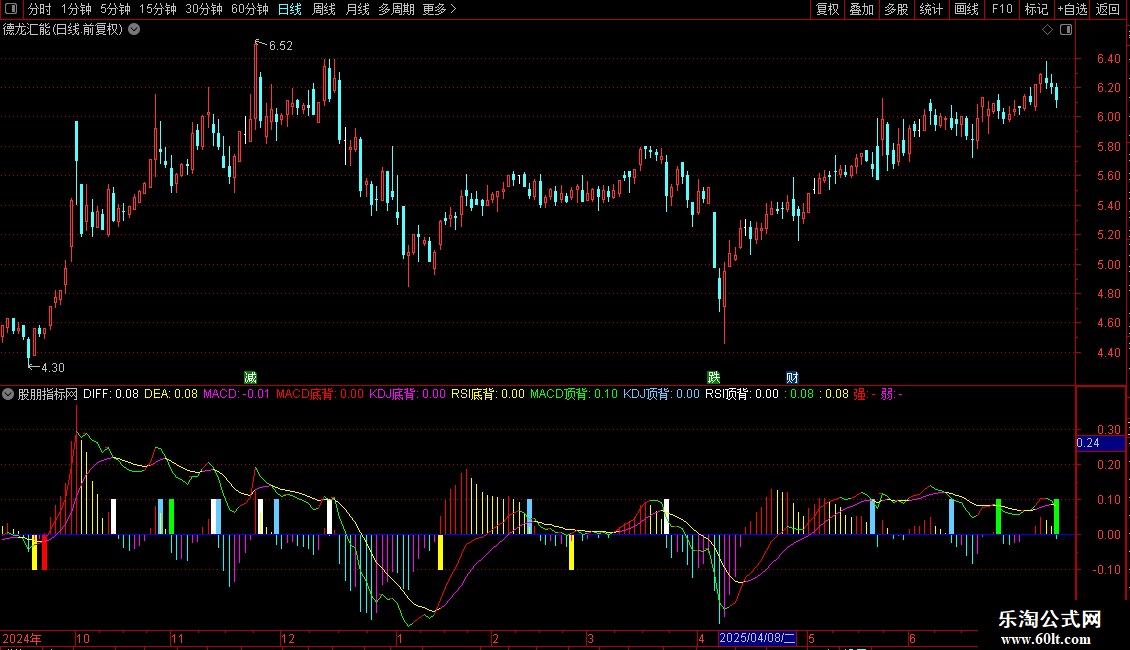 RSI顶背:IF(D3>0,0.1,0),COLORWHITE,POINTDOT;