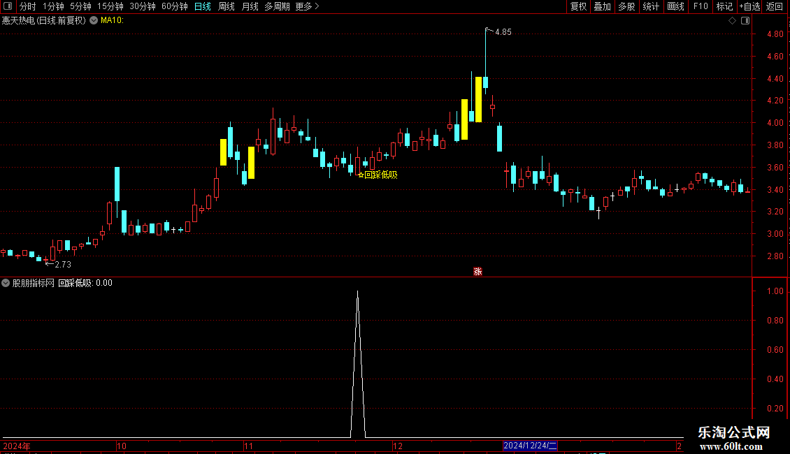 DRAWTEXT(回踩吸纳,L,'☆回踩低吸'),COLORYELLOW;