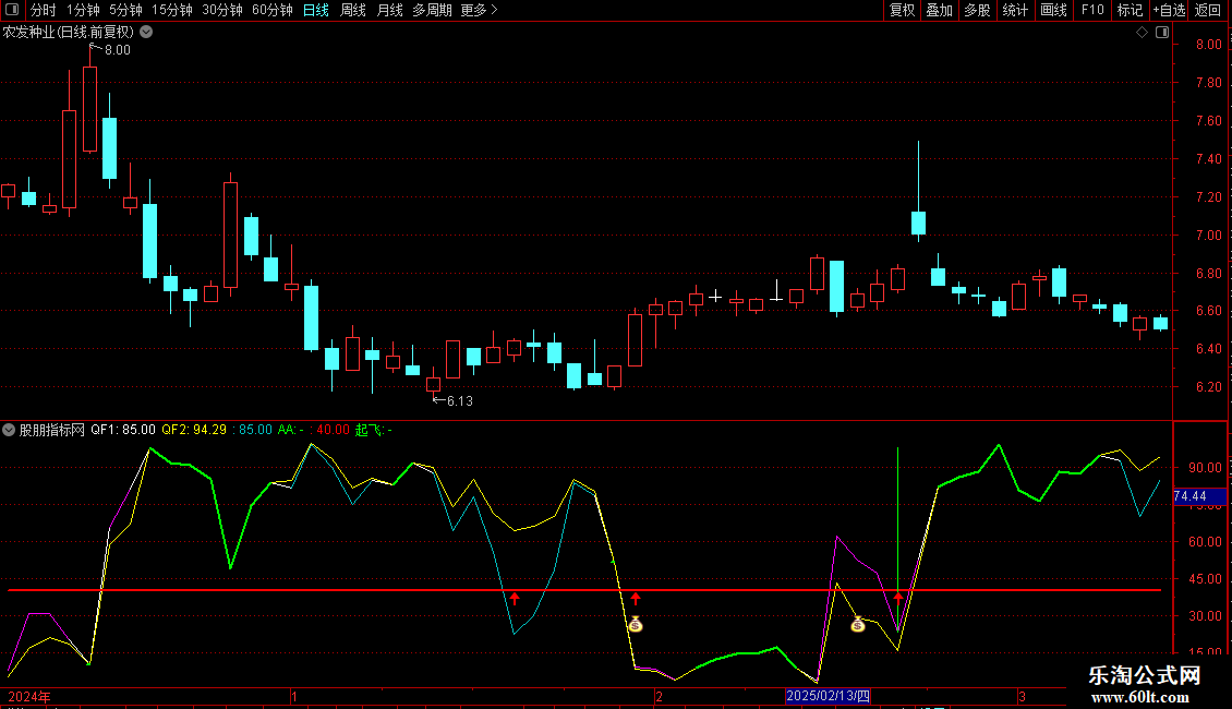 起飞:IF(QF2=QF1,QF2,DRAWNULL)COLORGREEN,LINETHICK2;