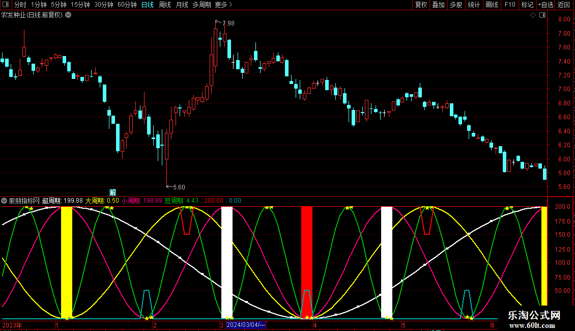 STICKLINE(短周期<5 AND 小周期>195,小周期,短周期,5,0),COLORWHITE;