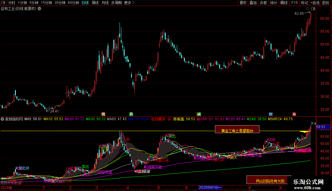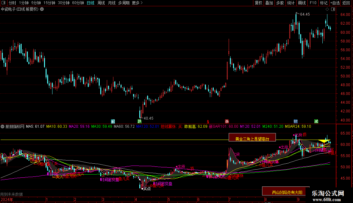 DRAWTEXT_FIX(1,0.70,0.10,0,'黄金三角上是望高台'),COLORYELLOW;