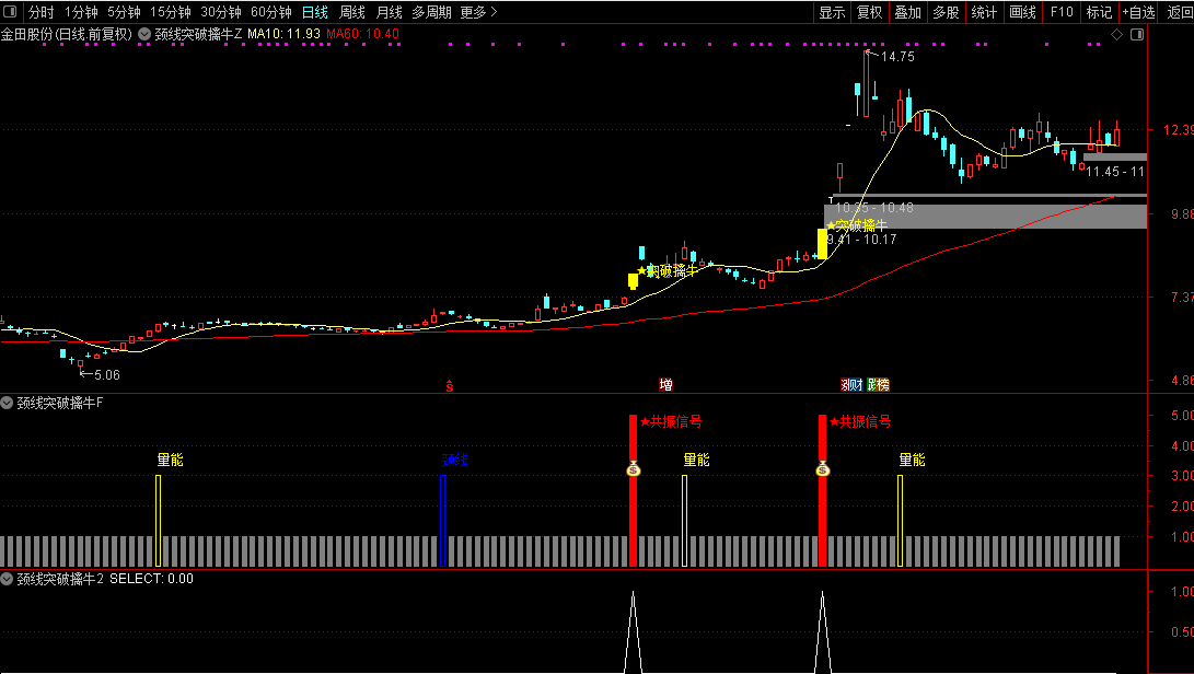 通达信【颈线突破擒牛】主副图/选股量能偏离和条件颈线突破同时满足源码