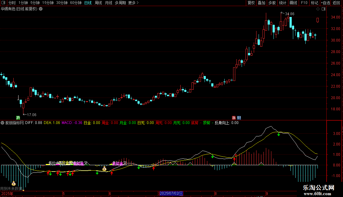 月金:IF(CROSS(月DIFF,月DEA),0.175,0),COLORGREEN;