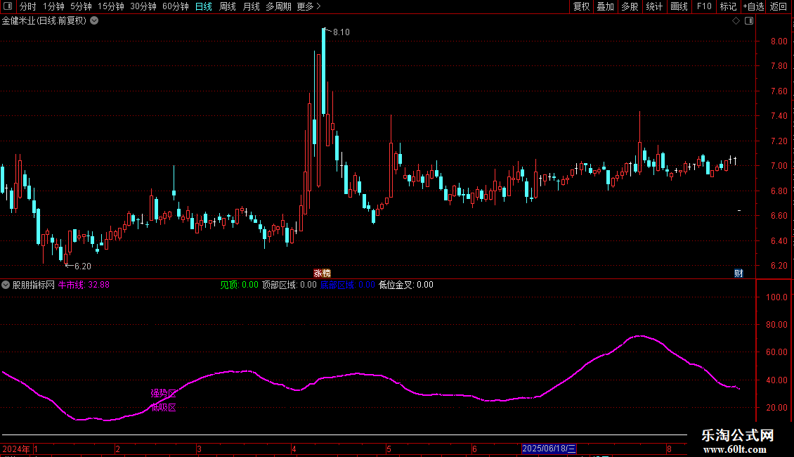 DRAWTEXT(CROSS(牛市线,20),20,'低吸区'),COLORFF00FF;