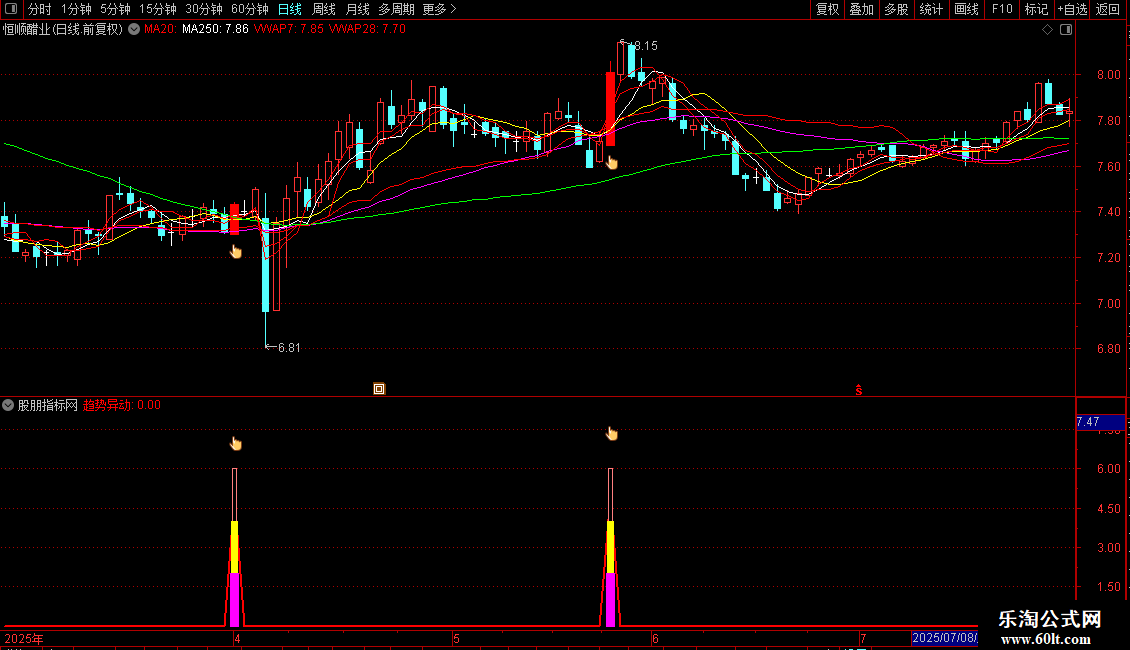 DRAWICON(趋势异动=5,LOW*0.995,11);