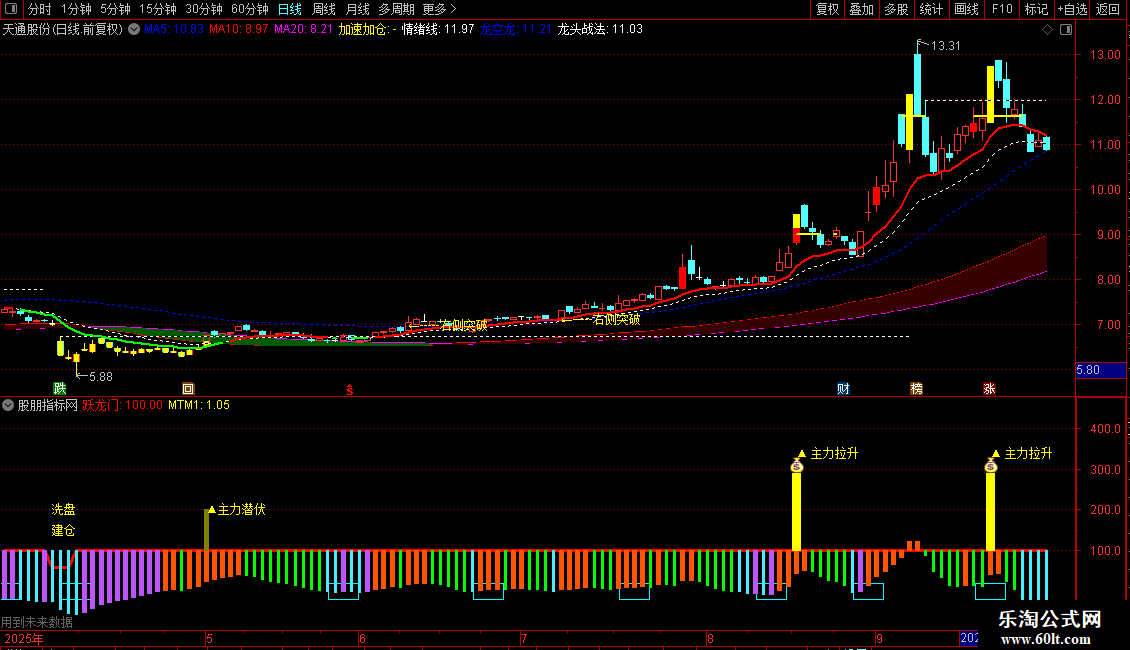 DRAWTEXT(龙头模式,L*0.99,'---主力筹码'),COLORYELLOW;