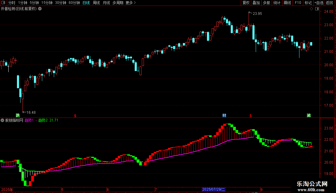 趋势1:IF(VAR7>REF(VAR7,1),VAR7,DRAWNULL),LINETHICK2,COLORFF00FF;