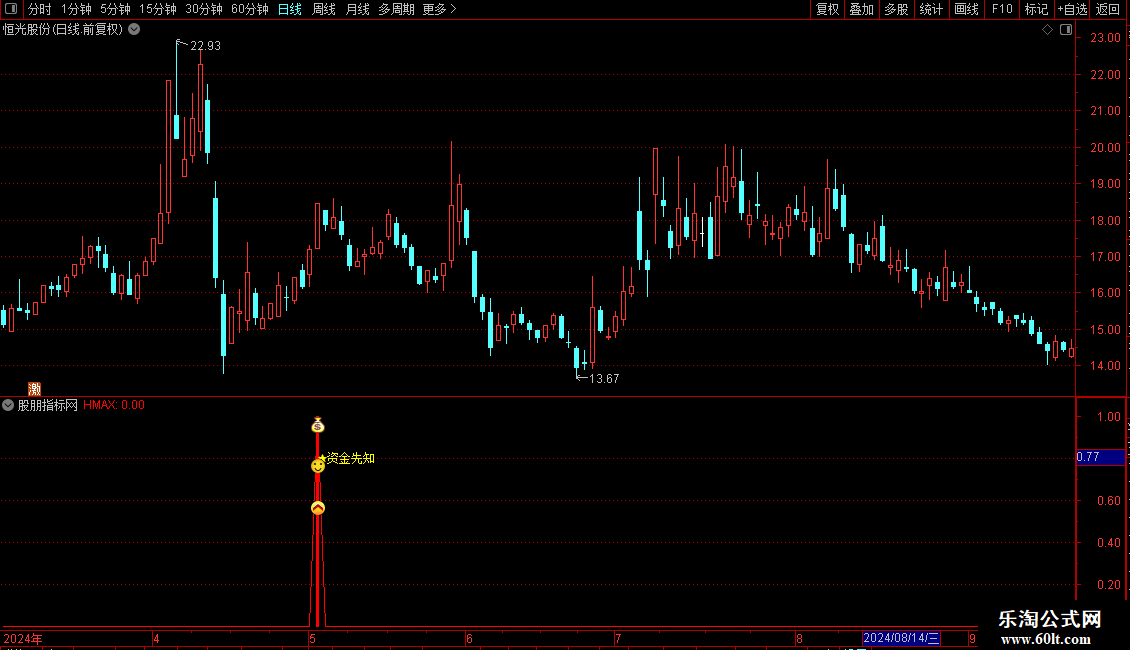 DRAWTEXT(HMAX,0.8, '★资金先知'),COLORYELLOW LINETHICK6;