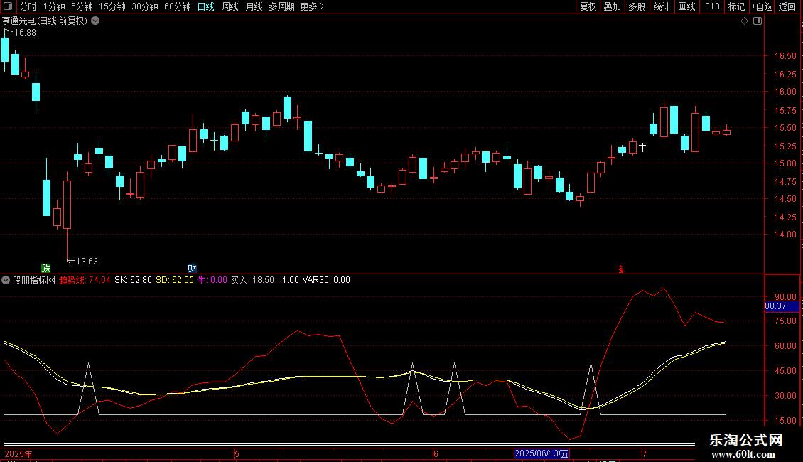 {涨势确立: VAR1*(VAR2C>0 AND VAR2D*16+81.5)*VAR1,COLOR80FFFF ;}
