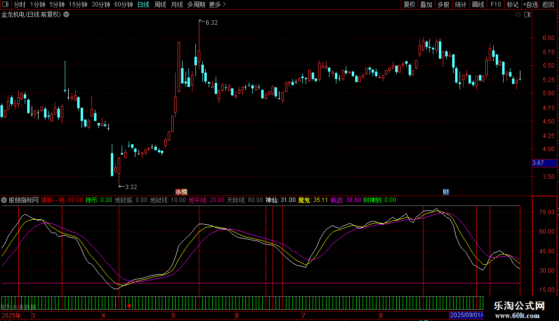堪称一绝:IF(REF(TJ,1)=0 AND TJ>=1,80,10),STICK,COLORRED;