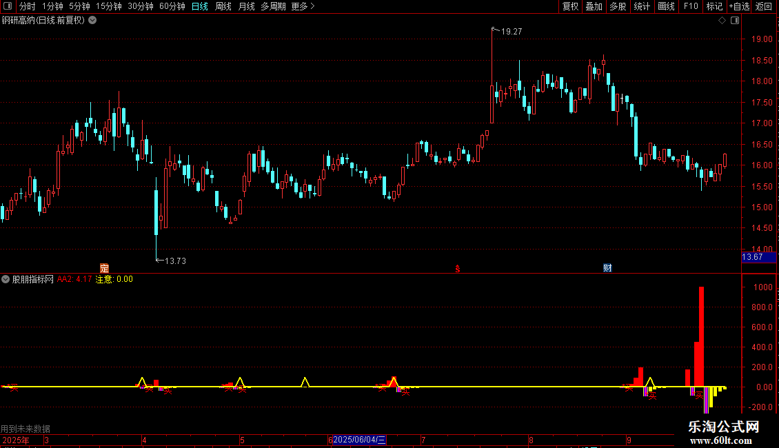 注意: IF(CROSS(J,3),95,0),COLORYELLOW,LINETHICK2;