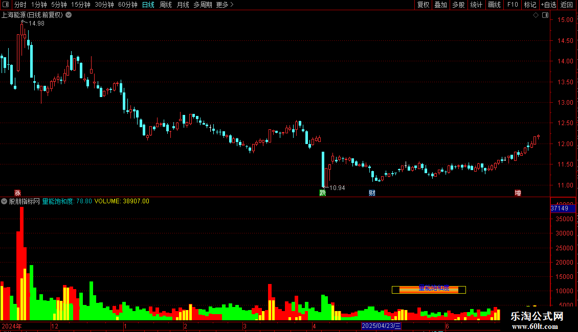 量能饱和度:IF(SAT>1,1,SAT)*100,COLORLIBLUE,NODRAW;