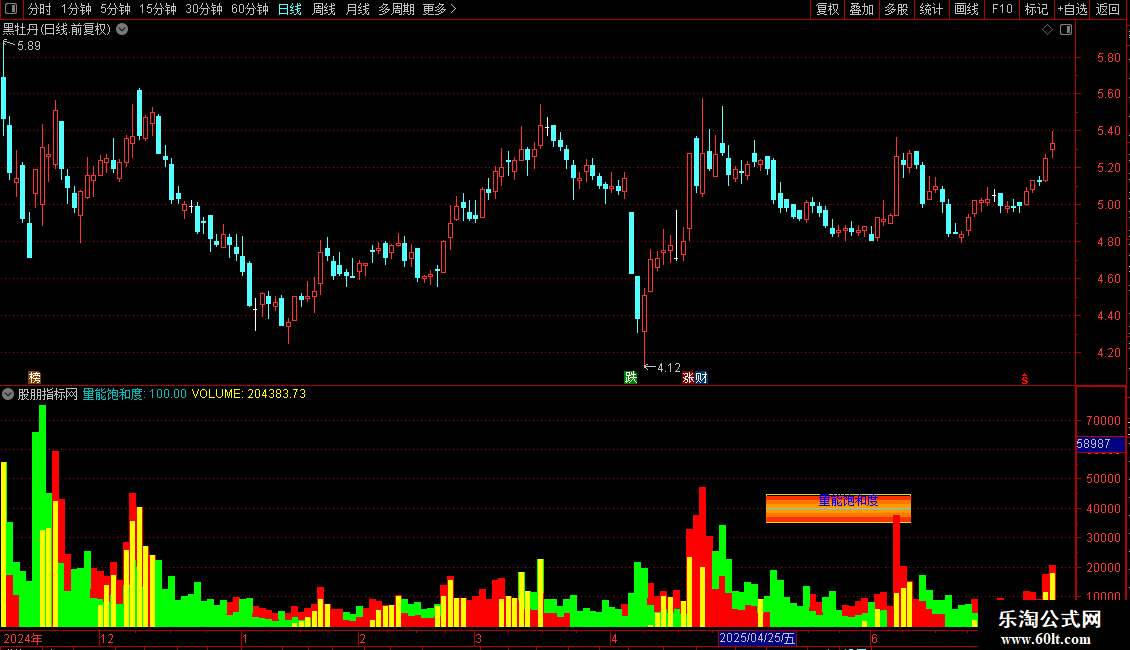 DRAWTEXT(CURRBARSCOUNT=N3,中点*1.82,'量能饱和度'),COLORBLUE;