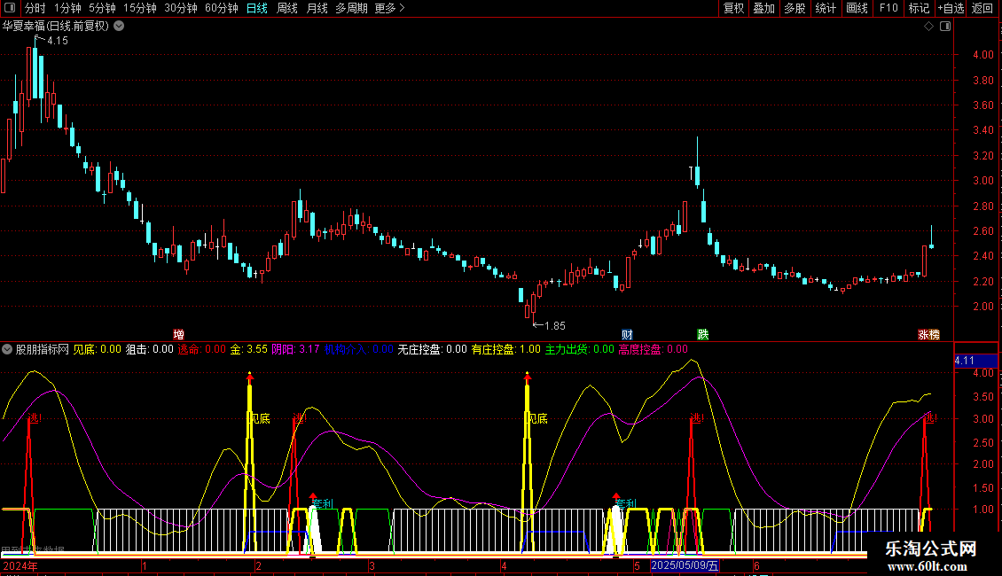 有庄控盘: 控盘>REF(控盘,1) AND 控盘>0,LINETHICK3;