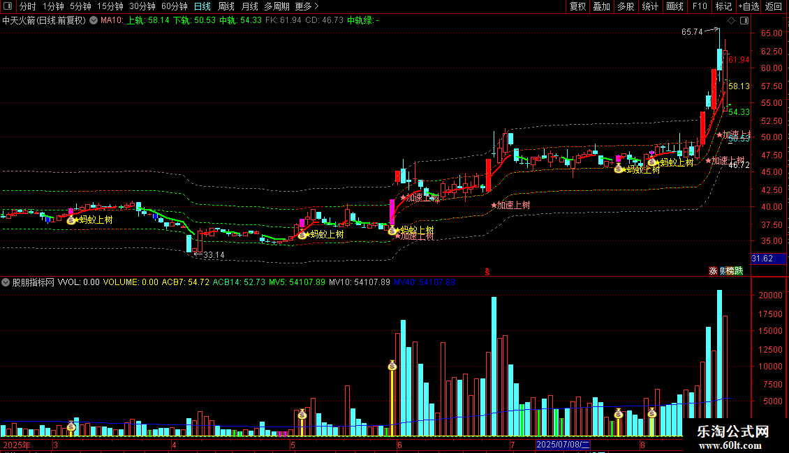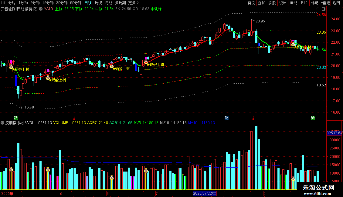 通达信〖蚂蚁上树〗股价突破上轨时提示信号 直观展示趋势转折点 主副图 源码