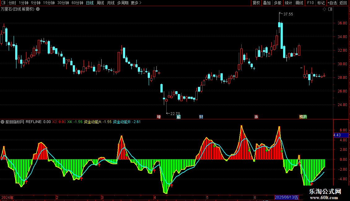 DRAWICON((CROSS(资金动能B,资金动能A) AND 资金动能A>0.25),资金动能A,2);