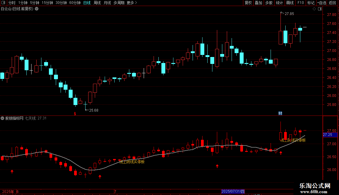 DRAWTEXT(CROSS(A4,A3),L,'线上阴线买停板'),LINETHICK4,COLOR22ACDE;