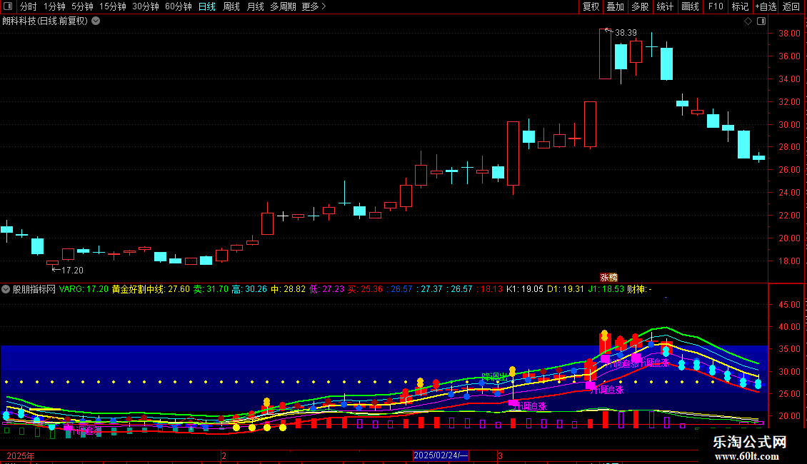 下中:=IF(1=1,低0+KJ*0.382,DRAWNULL),COLORMAGENTA,NODRAW;