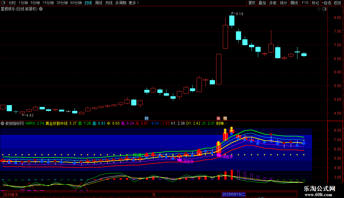 上中:=IF(1=1,低0+KJ*0.618,DRAWNULL),COLORMAGENTA,NODRAW;