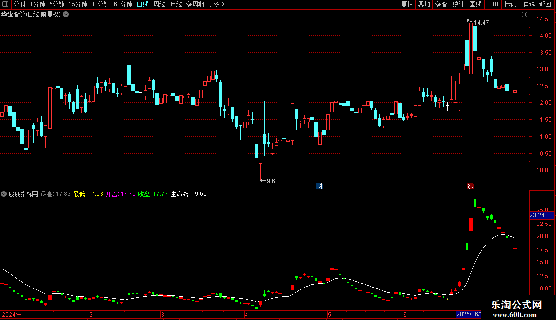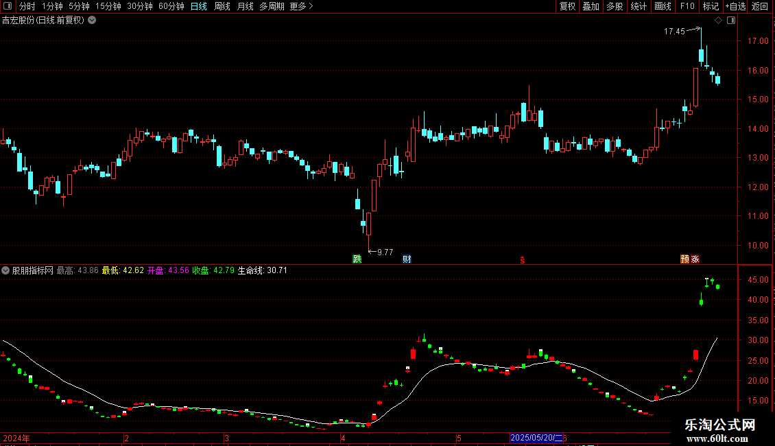 最低:VAR1*LOW/VAR3*1/10,POINTDOT,COLOR009900,COLORYELLOW;