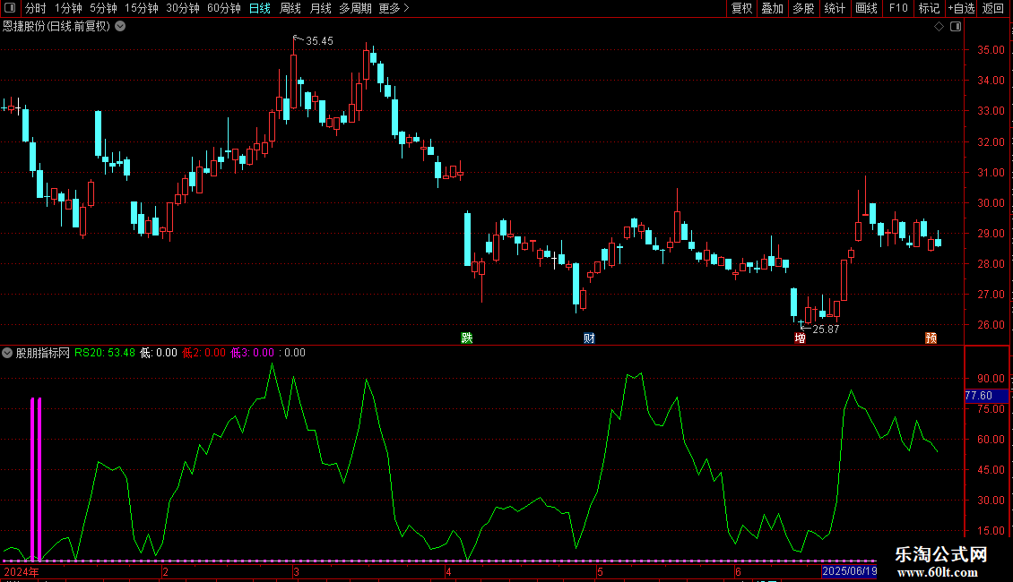 RS20:(C-LLV(L,20))/(HHV(H,20)-LLV(L,20))*100,COLORGREEN;