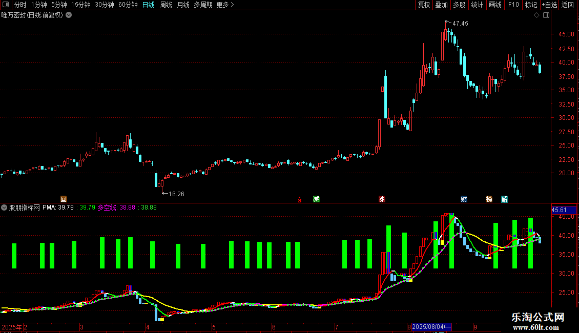 多空线:(20*X+19*REF(X,1)+18*REF(X,2)+17*REF(X,3)+16*REF(X,4)+15*REF(X,5)+14*REF(X,6)