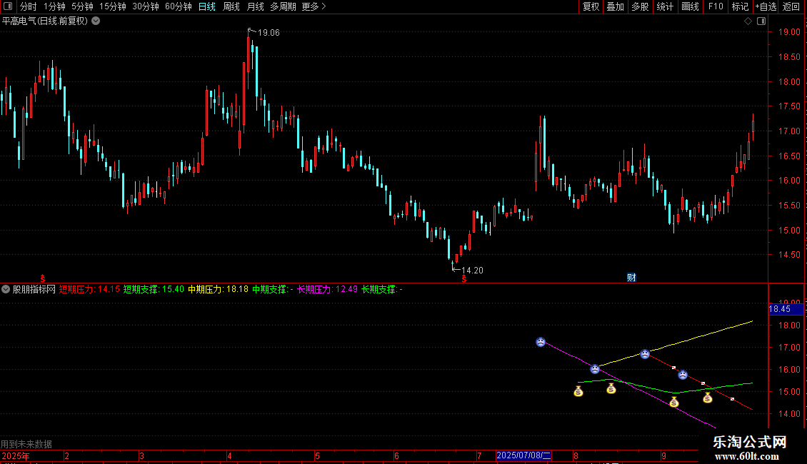 中期压力:DRAWLINE(S3,H,S2,H,1),COLORYELLOW;